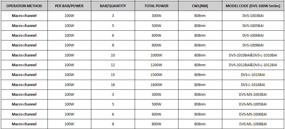 Wavelength:808nm Laser bars:12 bars Each bar:100W 12*100=1200W DVS-L-1012BAI