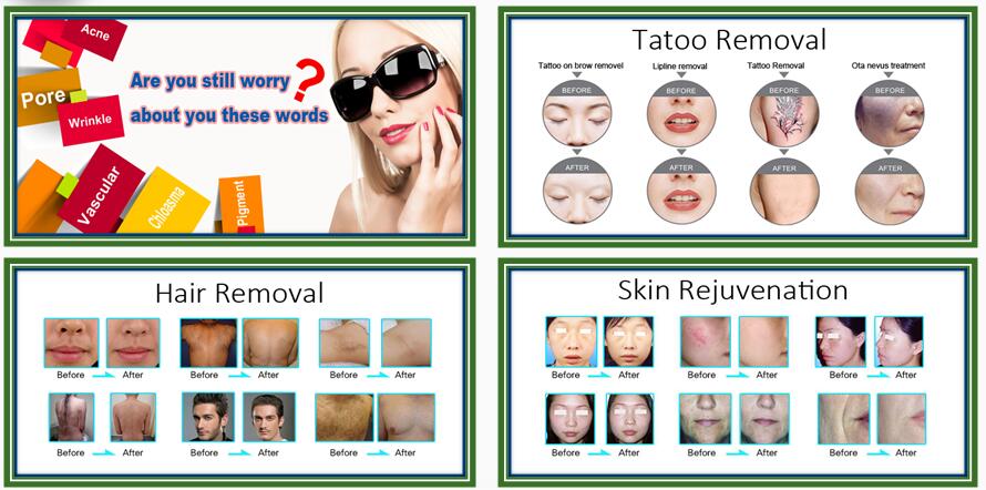 A: IPL SHR System for hair removal, freckles removal, vascular and acne therapy, etc. There are 7 filters with different wavelength for different treating items.