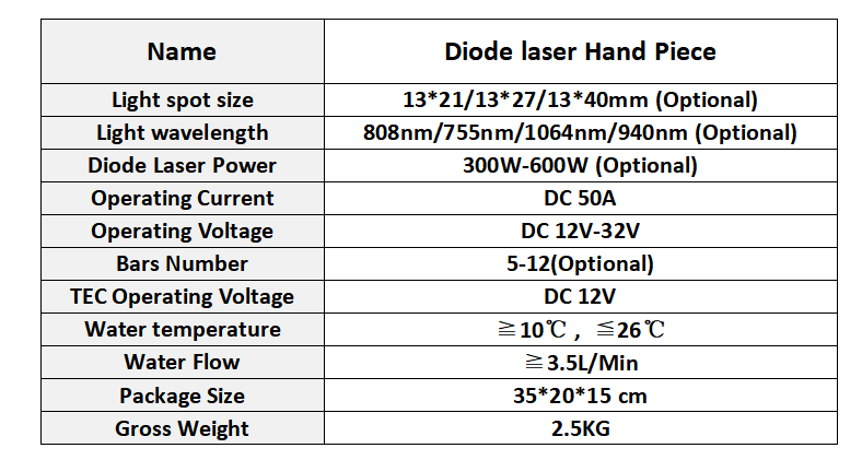 Optional wavelength:808nm 755nm 1064nm 940nm