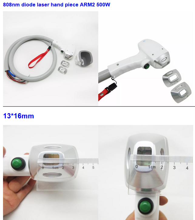 This is the third generation 808 handle which contains 808 semiconductor laser TEC refrigeration system buttons and sockets. It works with 50A/36V diode power supply and is used for hair removal.