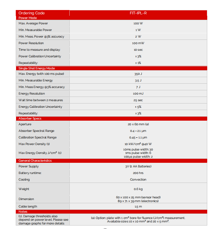 Laser energy meter for Aeshetic laser ipl elight shr opt dpl 808nm 755nm 1064nm 940nm diode laser hair removal machine