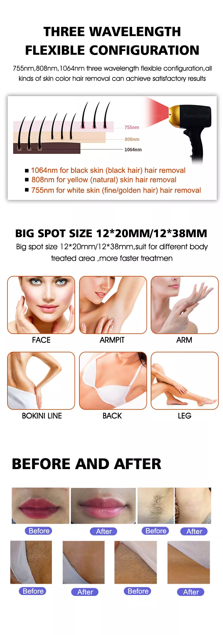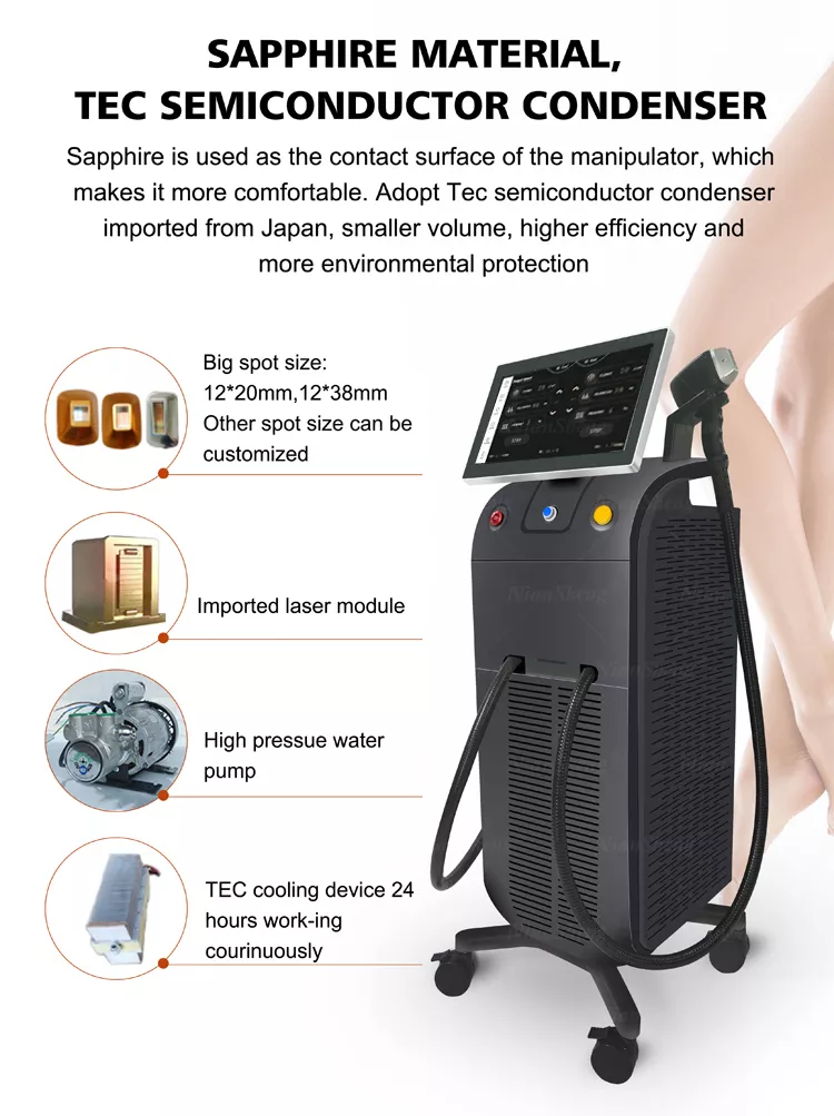 Three wavelength 808nm 755nm 1064nm diode laser machine